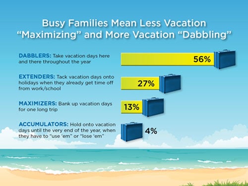 Are you a “Vacation Dabbler”? According to a new survey Embassy Suites conducted with Parents magazine, more than one-half of families consider themselves “vacation dabblers†who take days off sporadically throughout the year for shorter, one- to two-night trips. I would definitely put my family in this category. While we try to take one traditional family vacation per year (for a week or more), we also plan additional weekend getaways, which are scattered throughout the year. Whether it be a quick road trip somewhere in the state, or for a last-minute deal that was too good to pass up — our travel routine is anything but consistent … so yeah, we’re vacation dabblers!